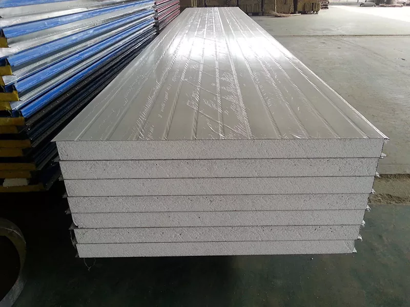 EPS sandwich vaj huam sib luag yog tsim los ntawm ob txheej txheej, feem ntau yog ua los ntawm cov hlau lossis txhuas, uas yog cov txheej txheem EPS. Cov txheej hlau muab lub zog thiab ruaj khov, tiv thaiv EPS core los ntawm kev puas tsuaj thiab ua kom lub vaj huam sib luag muaj kev ruaj ntseg. Kev sib xyaw ua ke ntawm EPS core thiab hlau txheej ua rau muaj zog, lub teeb yuag, thiab lub zog txuag hluav taws xob uas yooj yim rau nruab thiab tswj.