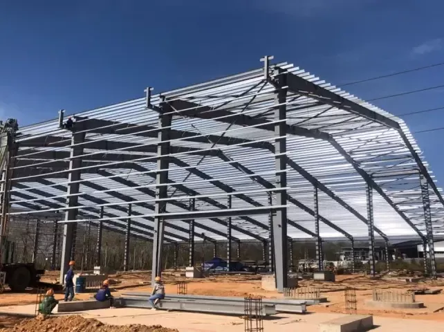 Cov prefabricated steel Cheebtsam raug thauj mus rau lub chaw tsim kho thiab sib sau ua ke siv Cranes thiab lwm cov cuab yeej siv hnyav. Cov txheej txheem teeb tsa feem ntau pib nrog erecting thiab anchoring cov kab rau lub hauv paus. Beams yog tom qab ntawd ntsia kom txuas cov kab ntawv, sib sau cov ncej ntawm lub tsev rau khoom. Ru tsev travuss yog tsa thiab ruaj rau tus ncej, txhawb nqa cov vov tsev. Txoj kev sib dhos no txoj kev sib dhos no ua rau cov qauv kev cai lij choj thiab kev ruaj ntseg ntawm lub tsev.