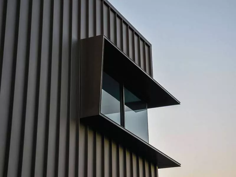 Thaum lub thav duab steel ua tiav, lub ru tsev yog nruab, feem ntau muaj cov hlau insulated los yog cov ntaub ntawv ib-ply membrane. Sab nrauv phab ntsa, yog tias muaj nyob rau hauv tus qauv tsim, kuj tau nruab nrog hlau panels, cib, los yog lwm yam ntaub ntawv cladding.