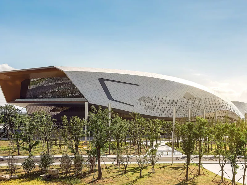 Steel qauv ua si ua si tau tsim nrog cov plhaub pob zeb loj uas tau yoog raws li qhov xav tau ntawm cov xwm txheej kis las, ua yeeb yam, thiab ntau txoj haujlwm ua haujlwm. Hoobkas prefabricated thiab cov txheej txheem ua ntej ua ntej tau ua haujlwm tau ua haujlwm, txo lub sijhawm tsim kho los ntawm 40%, muaj suab nrov. Ib qho ntxiv, lawv sib txuas ntse kev tswj kom muaj zog, photovoltaic, thiab dej nag ua cov khoom siv dej nag, txo kev siv hluav taws xob los ntawm ntau dua 30%. Lub seismic zoo nkauj thiab cua tsis kam ntawm cov hlau ua kom muaj kev nyab xeeb, thaum cov txheej txheem hlau facade thiab pob tshab kab hlau nplaum tsim cov duab thaj av niaj hnub. Lawv yog ob qho tib si churable thiab muaj kev cia siab, sawv cev rau cov khoom siv kis las ntsuab, thiab cov khoom siv ntse kis las.
